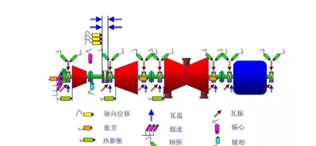 連續監測轉子相對于汽缸上一基準點(一般為推力軸承)的膨脹量,通常采用電渦流傳感器進行測量,也是保護轉子與靜子部件之間不發生摩擦的重要信號,當脹差過大時發出報警或者停機信號。