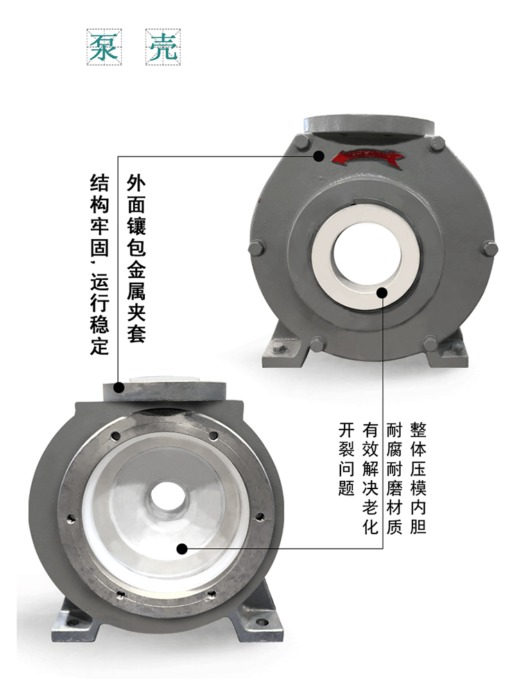 可靠厚實(shí),外面鑲包金屬夾套,結(jié)構(gòu)牢固,運(yùn)行穩(wěn)定,且能有效解決長(zhǎng)期室外運(yùn)行造成的塑料模壓件老化等不利影響。過(guò)流部件采用耐腐耐磨的UHM-WPE,PVDF等非金屬材料制造。該泵雖為半開(kāi)式葉輪,得益于成熟的水力設(shè)計(jì),具有較高的效率。采用獨(dú)特的耐顆粒集裝式單,雙端面機(jī)械密封。