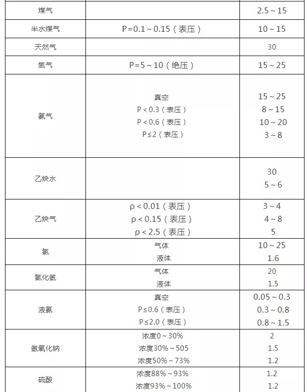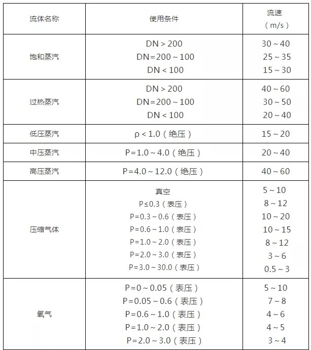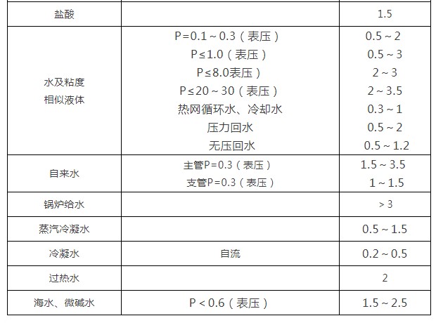 2、各種介質(zhì)常用流速一覽表