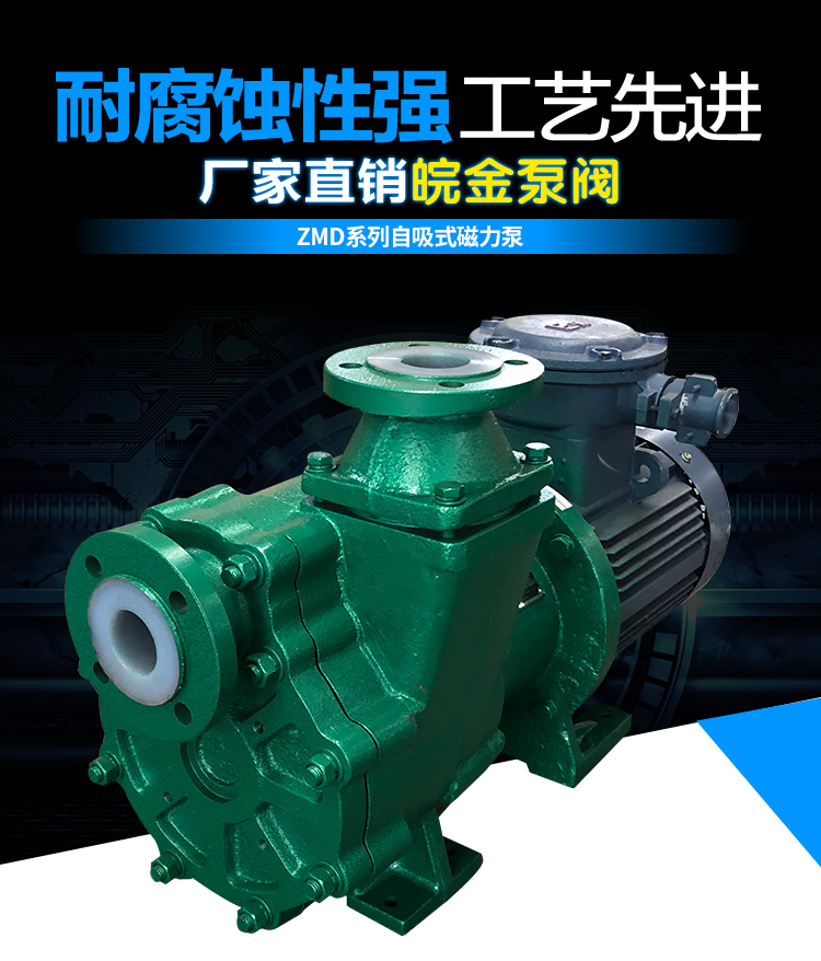 氟塑料磁力自吸泵又稱其為氟塑料自吸磁力泵、襯氟磁力自吸泵、耐腐蝕自吸化工泵,ZMD襯氟磁力自吸泵具有磁力泵和自吸泵的特性,同時兼具良好的自吸功能。按照國標設計研發(fā)可以輸送低位介質(zhì)、罐車原料裝卸、氣液混合介質(zhì)。過流部件緊襯氟塑料,泵體為金屬材料,能夠承受管道重量。取消軸封,利用磁力間耦合驅動,不會滴漏現(xiàn)象,保障工況安全生產(chǎn)。